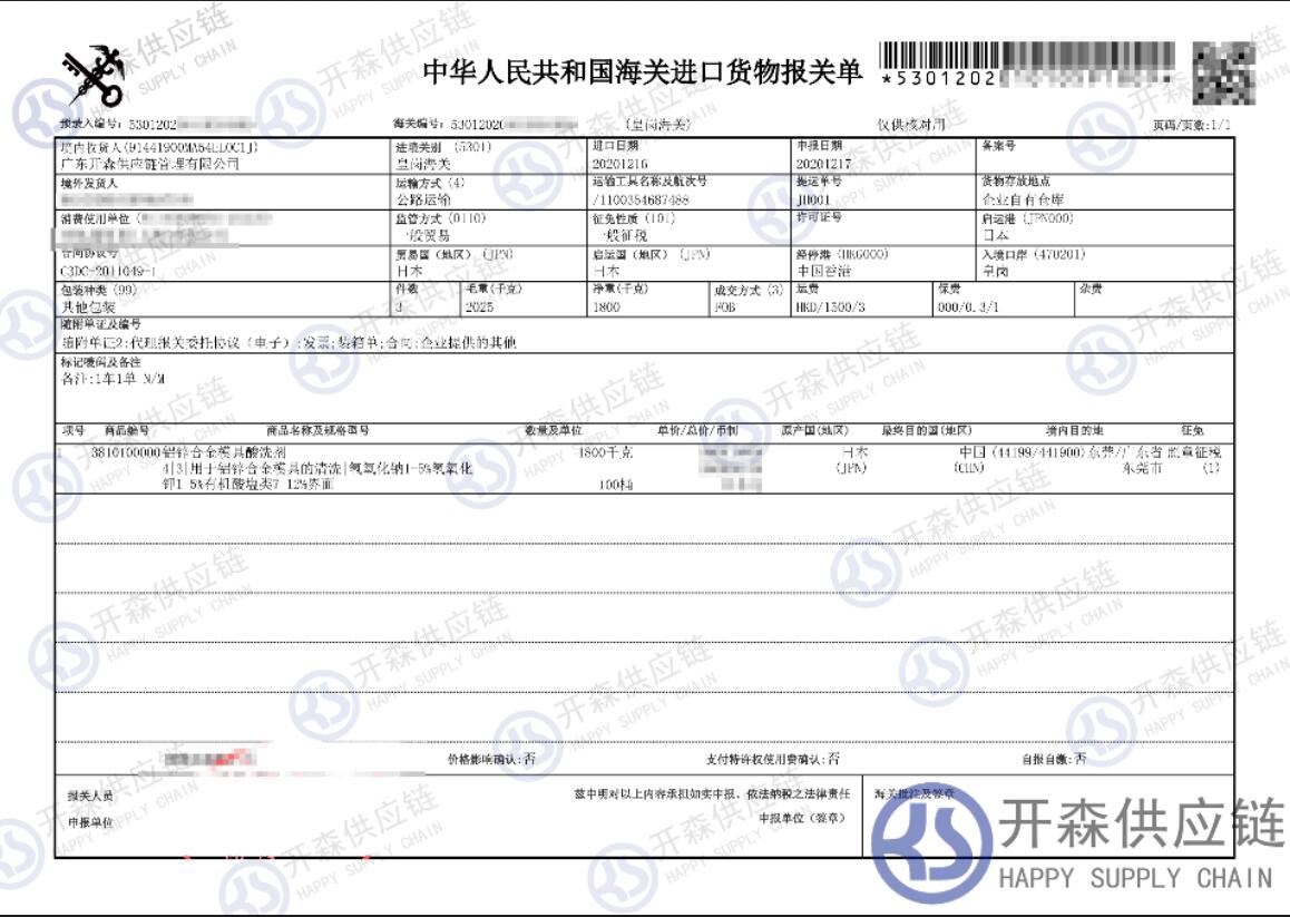 【本文結語】 上述就是深圳港日本清潔劑進口報關清關代理服務【經典案例】的全部內容,希望能對您有所幫助,如有化工品進口報關上任何疑問及問題可隨時在線聯系我們或撥打 18002611553,開森供應鏈擁有豐富的化工品進口報關操作經驗及案例,10余年進口經驗為您所用,各類進口疑難都能為您一一解答及協助快速處理解決!