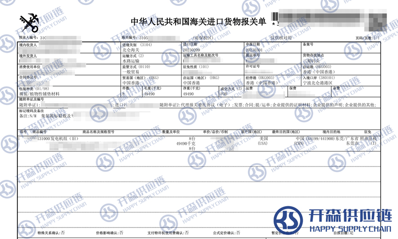 【本文結語】 上述就是廣州黃埔港舊發電機組進口報關清關代理服務【經典案例】的全部內容,希望能對您有所幫助,如有二手機械進口報關上任何疑問及問題可隨時在線聯系我們或撥打 18002611553,開森供應鏈擁有豐富的二手機械進口報關操作經驗及案例,10余年進口經驗為您所用,各類進口疑難都能為您一一解答及協助快速處理解決!