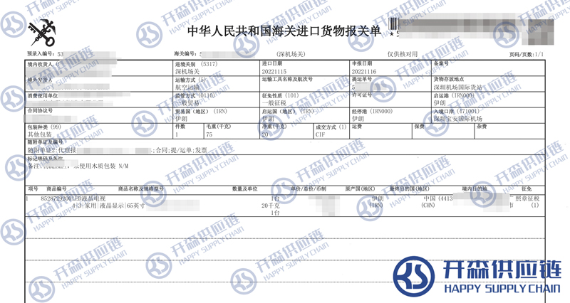 【導讀】您正在閱讀的是關于深圳機場LED液晶電視進口報關代理服務【經典案例】的內容,本文由開森深圳進口清關代理小編整理編寫;