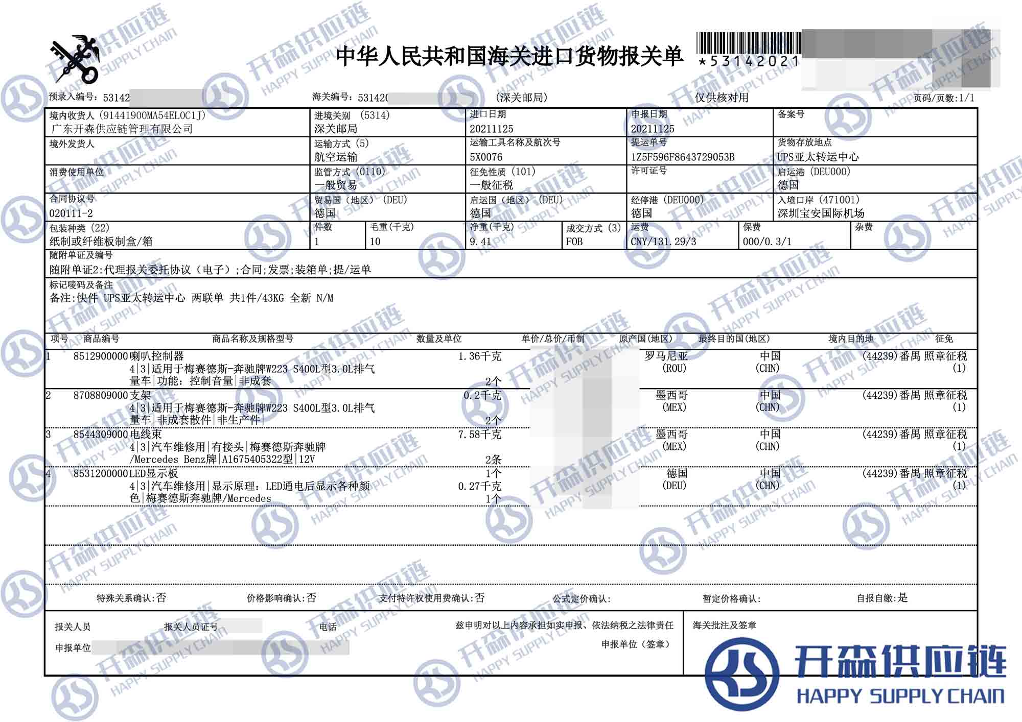 德國(guó)奔馳顯示板汽車配件進(jìn)口報(bào)關(guān)代理【進(jìn)口案例】