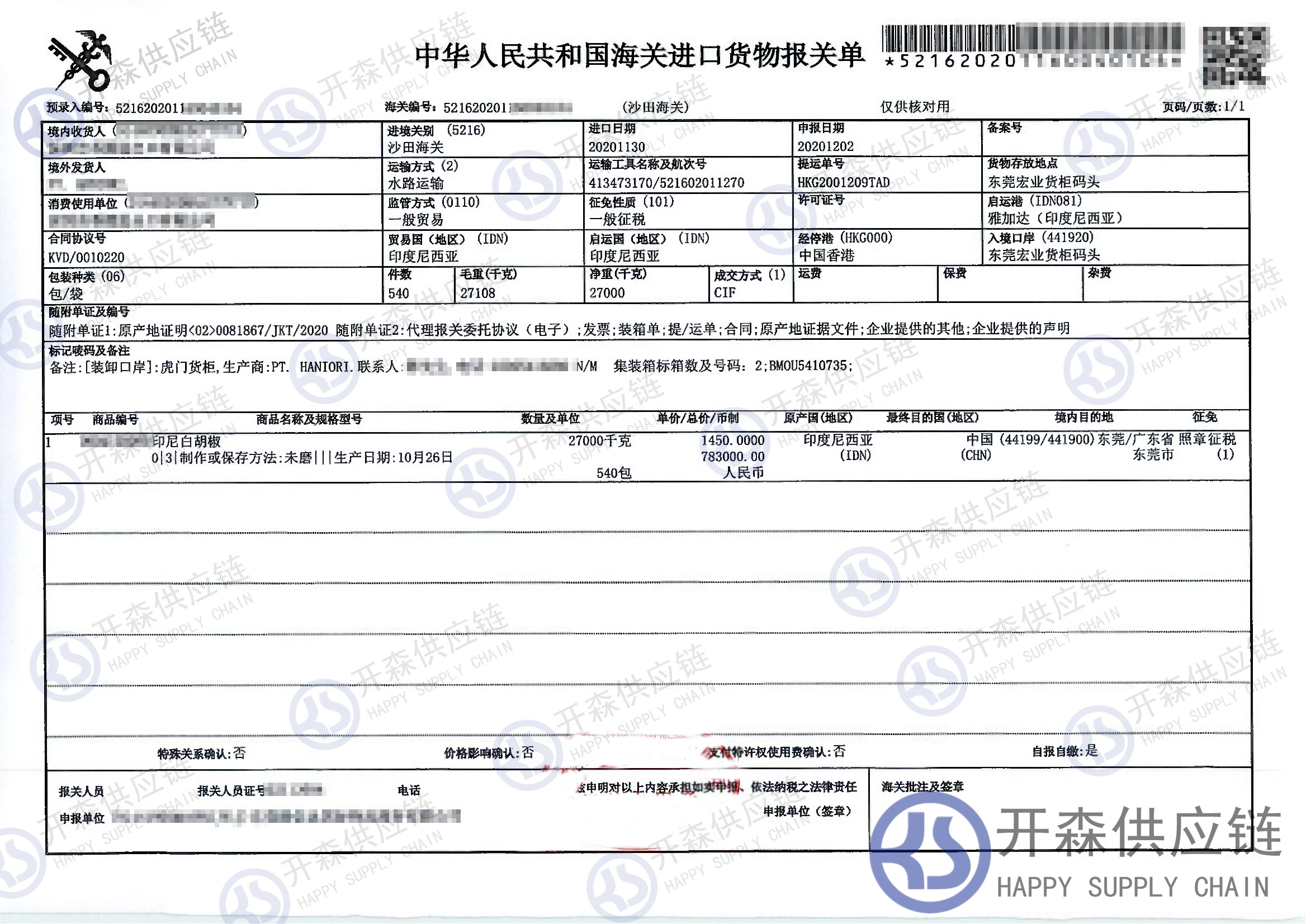 從印度尼西亞進口一批胡椒到東莞碼頭,我司提供門到門進口一站式清關服務,開森擁有十余年農副產品進口清關經驗及案例,為客戶提供量身制作的進口方案,讓客戶進口省時省心省成本。