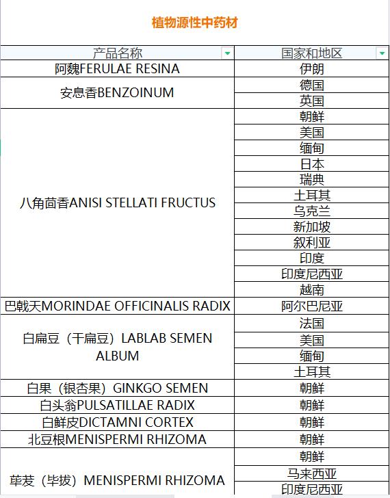 海關(guān)總署對(duì)進(jìn)境中藥材實(shí)施檢疫準(zhǔn)入制度,包括產(chǎn)品風(fēng)險(xiǎn)分析、監(jiān)管體系評(píng)估與審查、確定檢疫要求、境外生產(chǎn)企業(yè)注冊(cè)登記以及進(jìn)境檢疫等。目前,我國(guó)已準(zhǔn)予91個(gè)國(guó)家、地區(qū)的上百種中藥材,企業(yè)可在海關(guān)總署—?jiǎng)又参餀z疫司—檢疫要求和警示信息(http://dzs.customs.gov.cn/dzs/2746776/4445554/index.html)查詢(xún)準(zhǔn)予進(jìn)口中藥材種類(lèi)及輸出國(guó)家地區(qū)名錄信息(也可咨詢(xún)開(kāi)森供應(yīng)鏈,我們將為您提供最新詳細(xì)名單目錄)